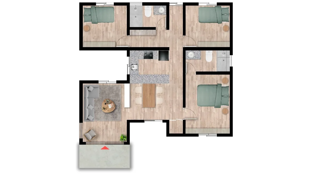 • Terraza de ingreso: Terraza funcional que brinda un respiro al aire libre y una bienvenida cálida al hogar.