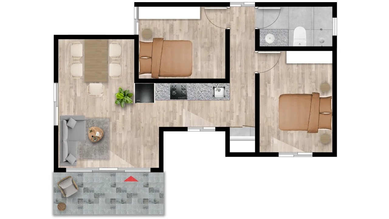 • 2 Dormitorios: Espacios cómodos y funcionales, diseñados para ofrecer descanso y practicidad en un entorno compacto.
